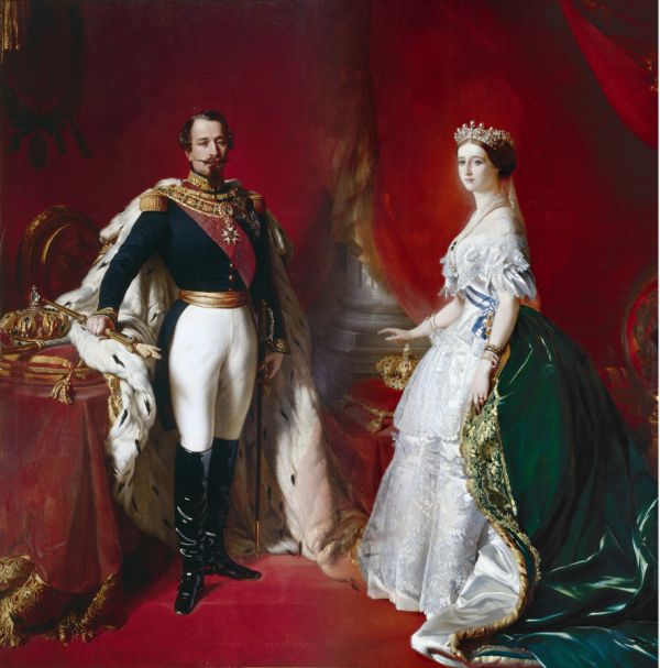 Napoleon III de jongste zoon van Hortense en Lodewijk met zijn gemalin keizerin Eugénie.